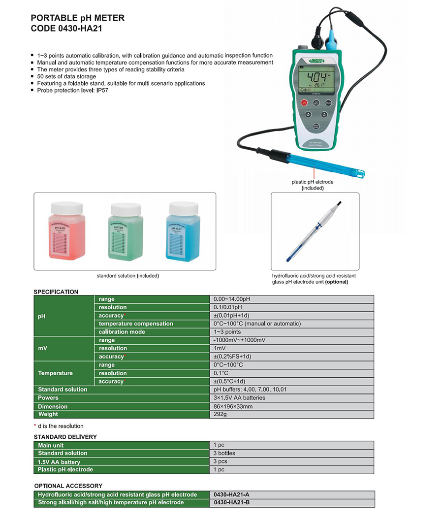 0430-HA21 pH/mV off-line 0.00~14.00pH, -1000mV~+1000mV, 0°C~100°C no