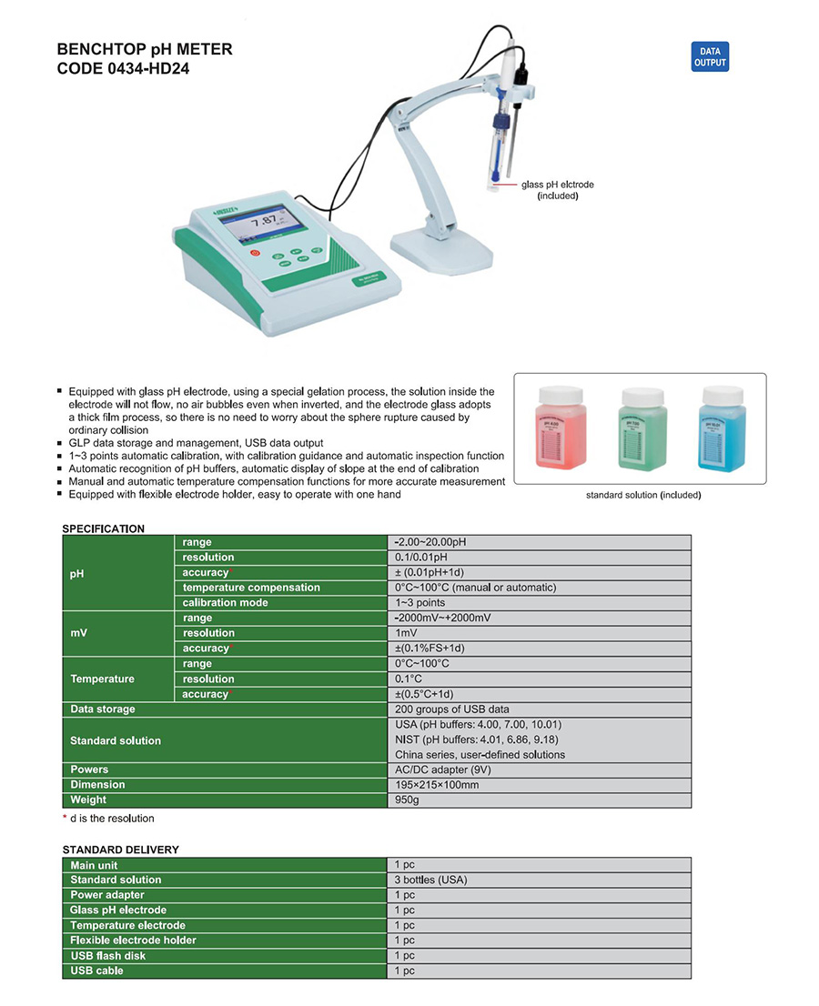 0434-HD24 pH/mV off-line -2.00~20.00pH, -2000mV~+2000mV, 0°C~100°C yes