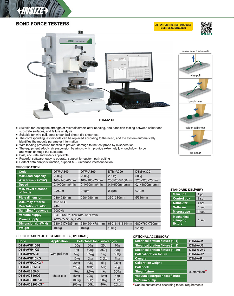 Suitable for wire pull, bond shear, ball shear, die shear test