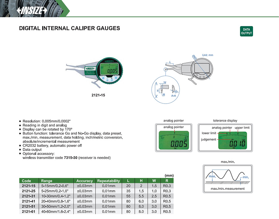 2121-41 20-40mm/0.8-1.6" ±0.03mm 0.005mm/0.0002"