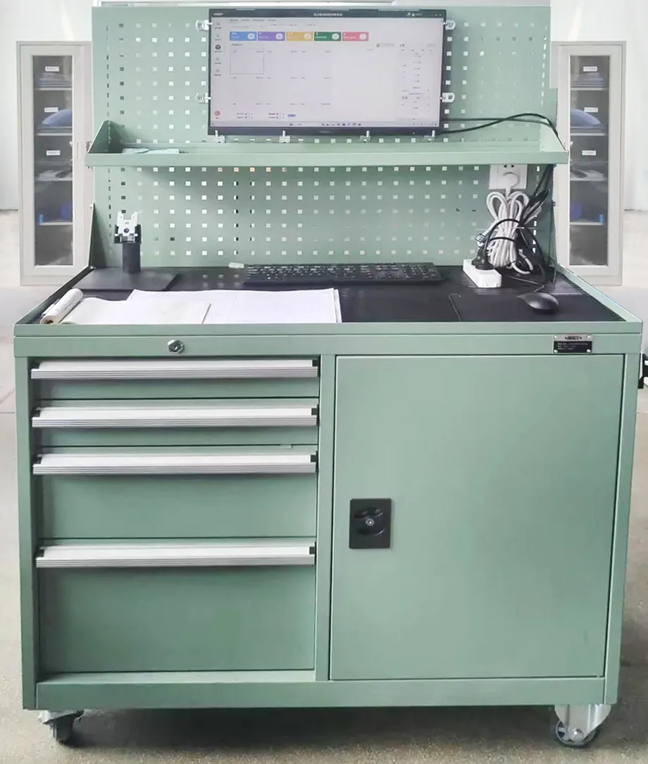 In-Process Measurement System: Implementation of the 7901 mobile workbench equipped with various digital gauges.