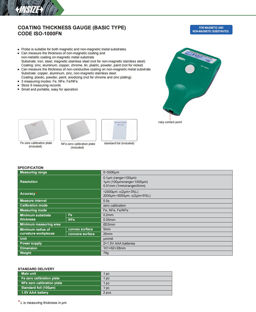 ISO-1000FN 0~5000μm <2000μm: ±(2μm+3%L), 2000μm~5000μm: ±(2μm+5%L) 0.1μm (range<100μm), 1μm (100μm≤range<1000μm), 0.01mm (1mm≤range≤5mm) no
