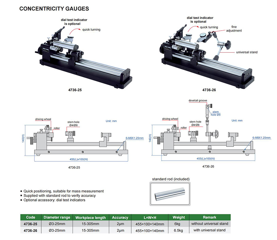 4736-26 Ø3-25mm 2µm with universal stand
