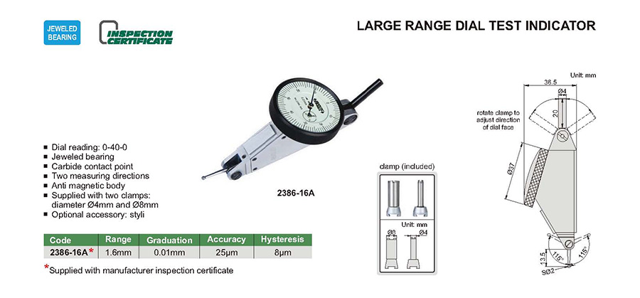 2386-16A 1.6mm 25µm 0.01mm