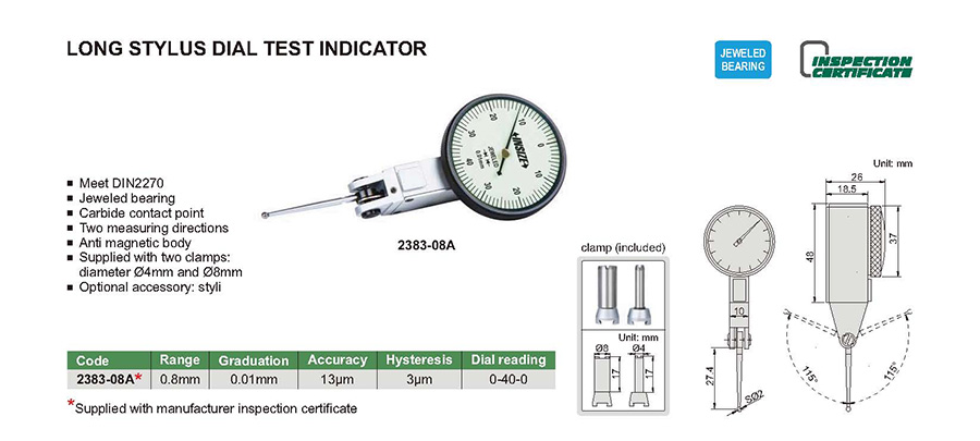 Home / Dimensional Metrology / Measuring Tools / Indicators And Dial Indicator Stands / Dial Test Indicators