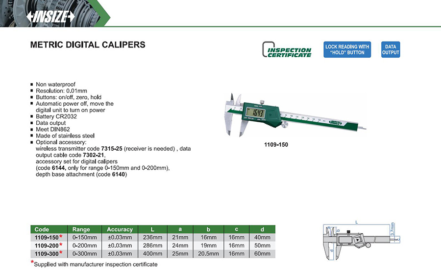 1109-150 0-150mm ±0.03mm 0.01mm with data interface