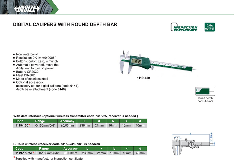 1119-150 0-150mm/0-6" ±0.03mm 0.01mm/0.0005" with data interface
