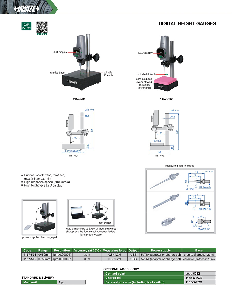 | 1157-501 | 0~50mm | 3µm | 1µm/0.00005" |
