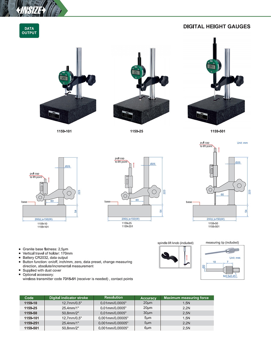 1159-101 12.7mm/0.5" 5µm 0.001mm/0.00005"