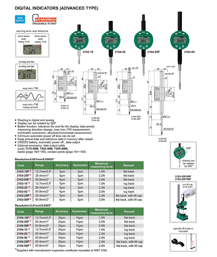 | 2103-25 | 25.4mm/1" | 5µm | 0.001mm/0.00005" |