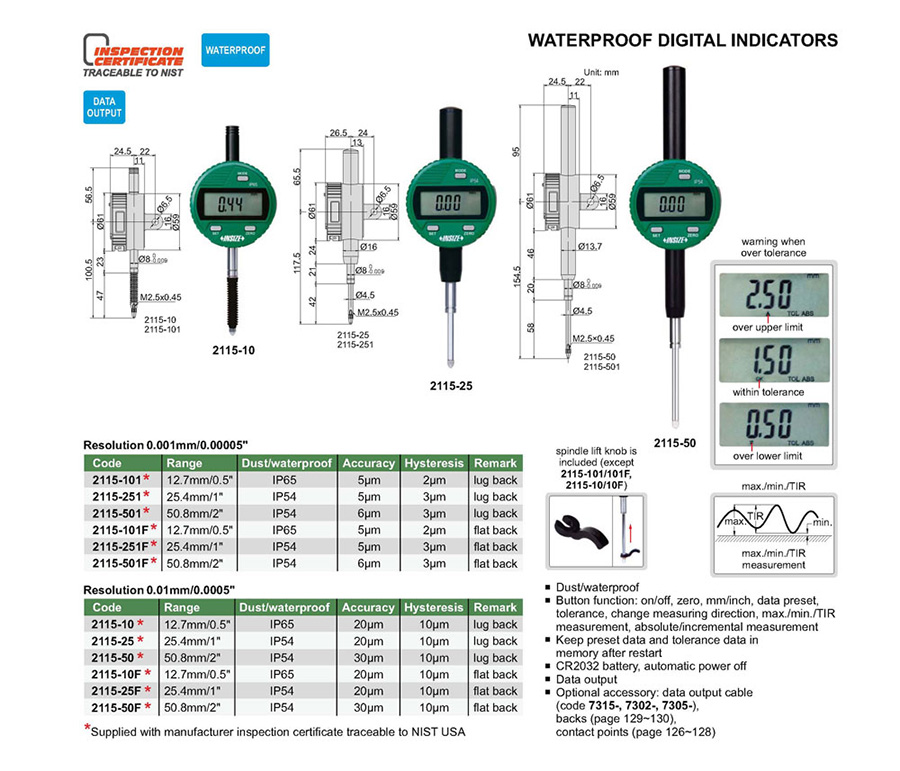 2115-101F 12.7mm/0.5" 5µm 0.001mm/0.00005"