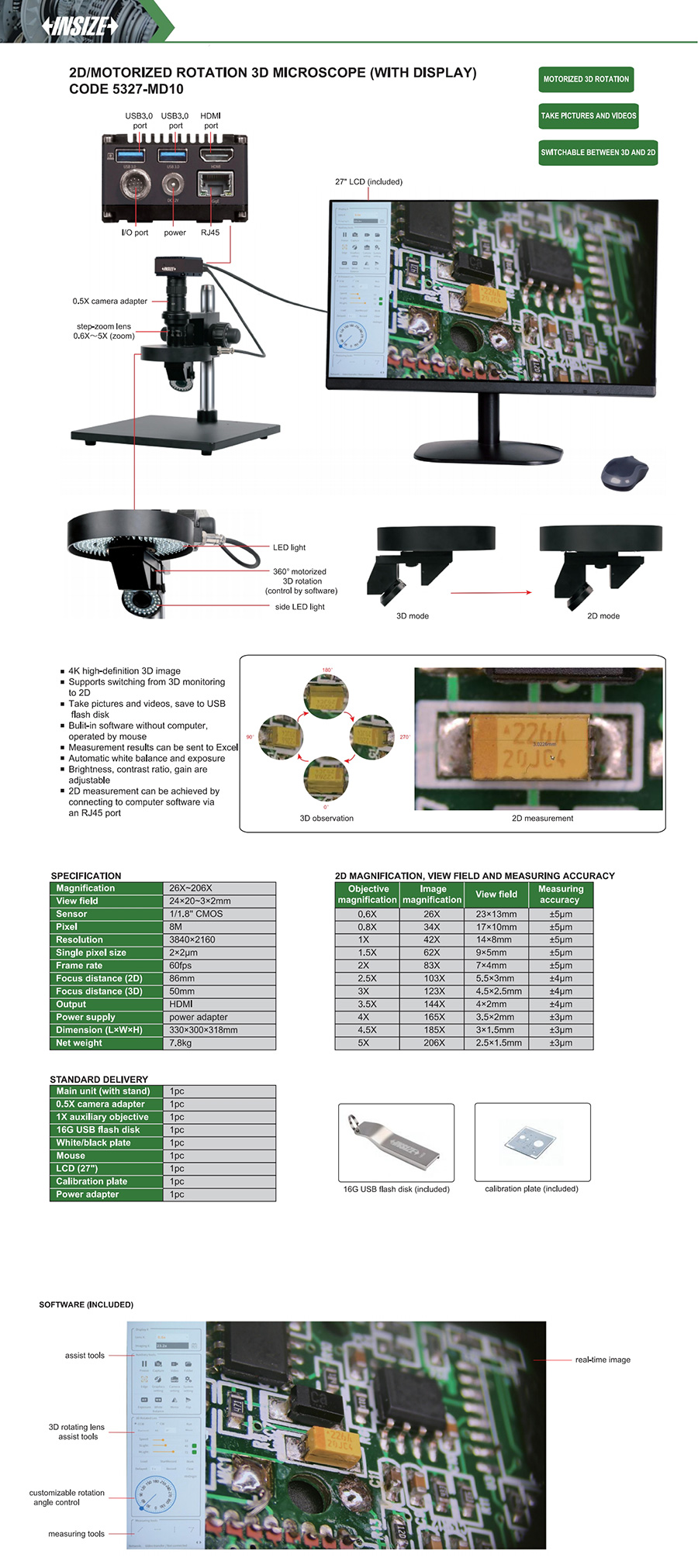 5327-MD10 2D/motorized rotation 3D microscopes 26X~206X 24×20~3×2mm 8M