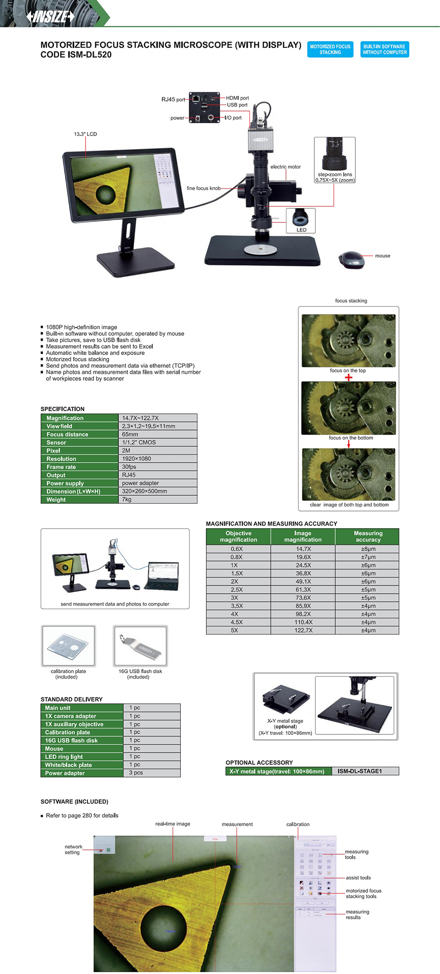 ISM-DL520 digital measuring microscopes 14.7X~122.7X 2.3×1.2~19.5×11mm 2M