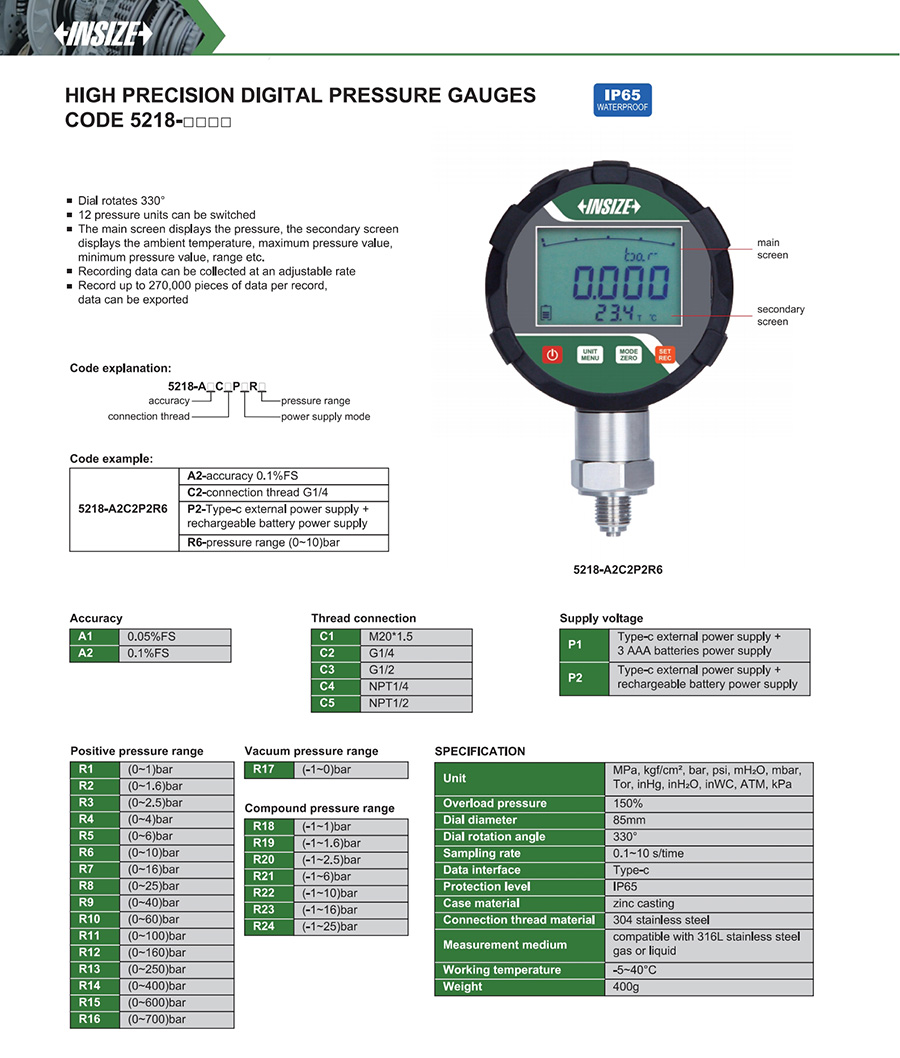 5218 0.05%FS, 0.1%FS M20*1.5, G1/4, G1/2, NPT1/4, NPT1/2 85mm