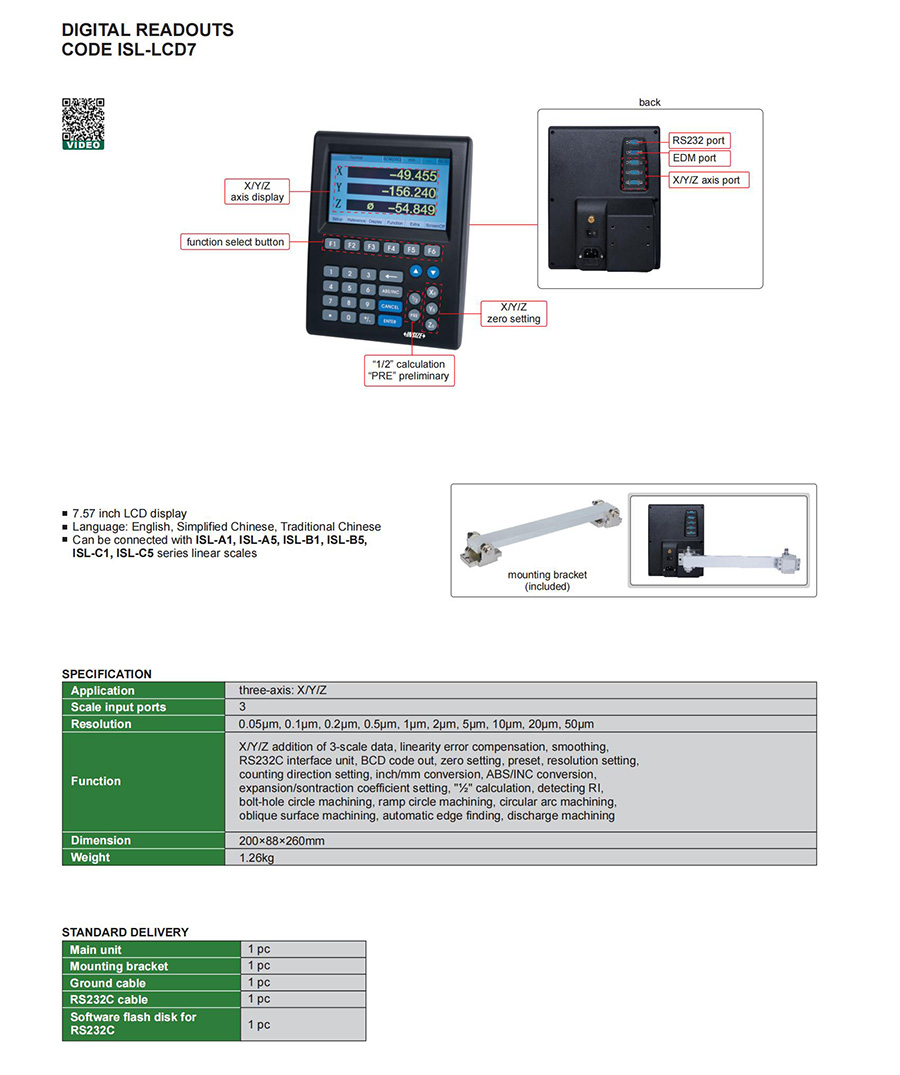 ISL-LCD7 three-axis: X/Y/Z optical linear scales 0.05μm, 0.1μm, 0.2μm, 0.5μm, 1μm, 2μm, 5μm, 10μm, 20μm, 50μm 3