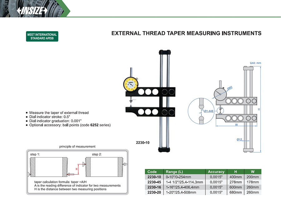 2230-10 0-10"/0-254mm 0.0015" 0.001" taper