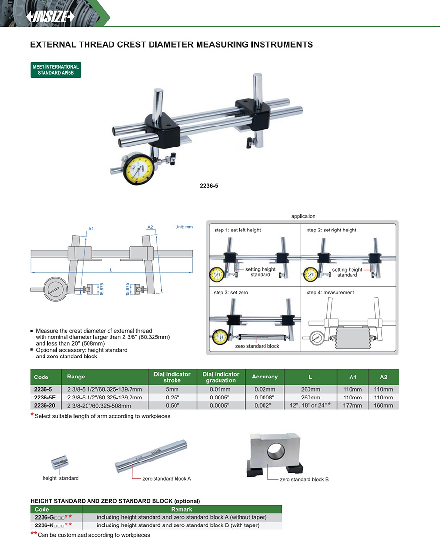 | 2236-5 | 2 3/8-5 1/2"/60.325-139.7mm | 0.02mm | 0.01mm | crest diameter |
