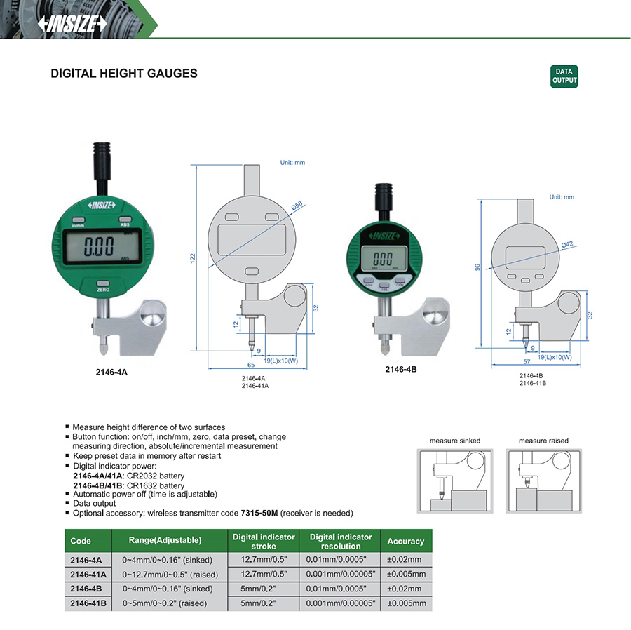 2146-4B 0~4mm/0~0.16" (sinked) 0~5mm/0~0.2" (raised) ±0.02mm 0.01mm/0.0005"