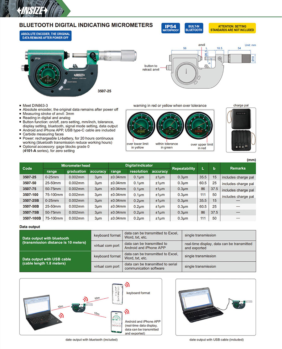 | 3507-50 | 25-50mm | 0.002mm | 0.1μm | ±0.04mm |