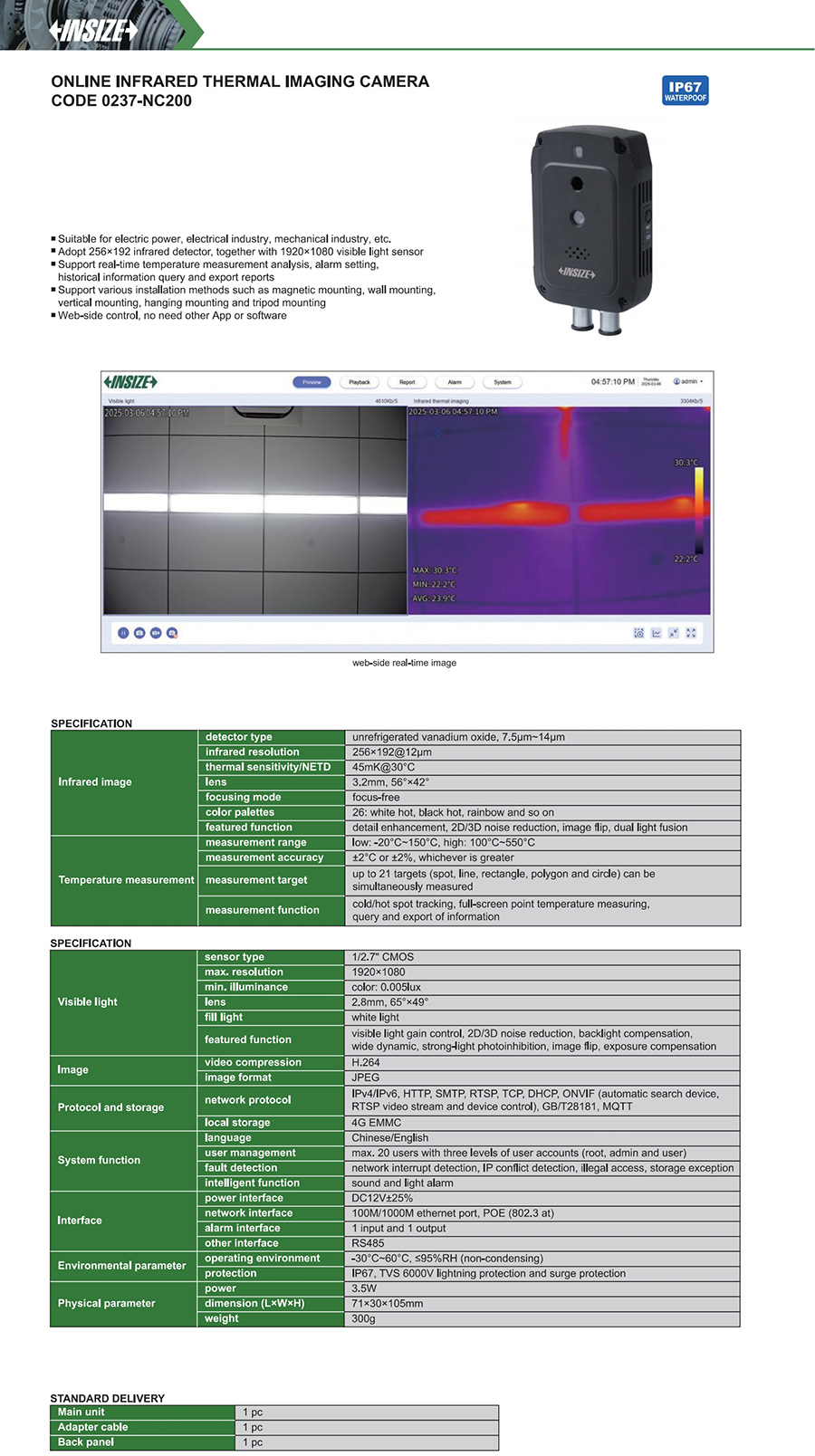 0237-NC200 low: -20°C~150°C, high: 100°C~550°C 256×192@12µm focus-free no