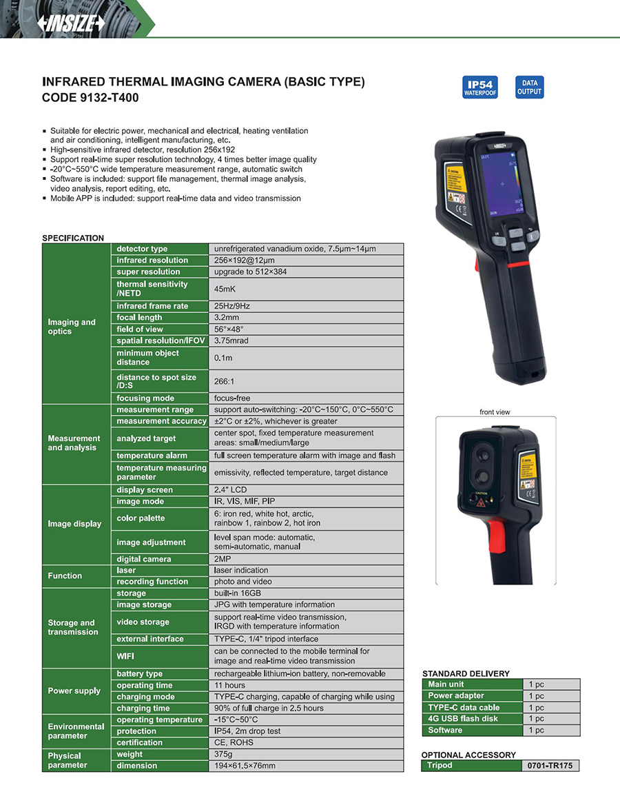 | 9132-T400 | support auto-switching:-20°C~150°C, 0°C~550°C | 256×192@12µm | focus-free | yes |