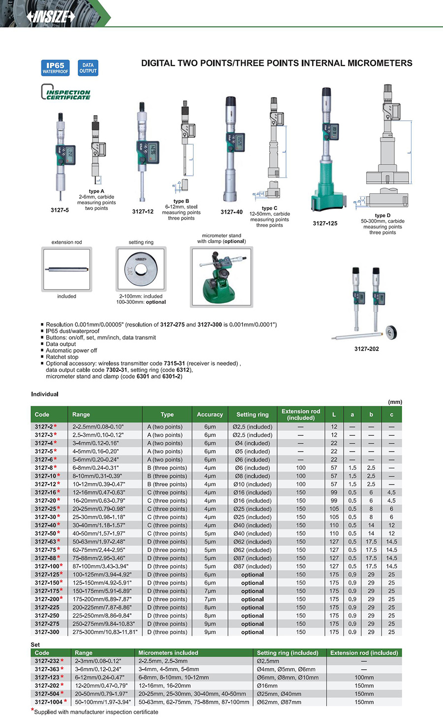 3127-16 12-16mm/0.47-0.63" 4μm 0.001mm/0.00005"