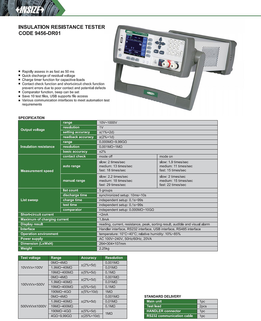 | 9456-DR01 | 10V~1000V | 9.99GΩ | no |