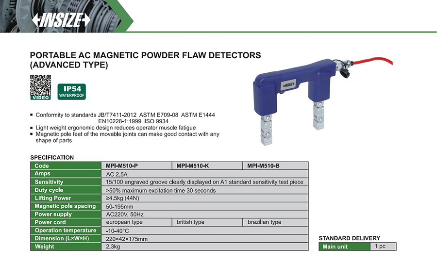| MPI-M510-B | 15/100 engraved groove clearly displayed on A1 standard sensitivity test piece | ≥4.5kg (44N) | 50-195mm |
