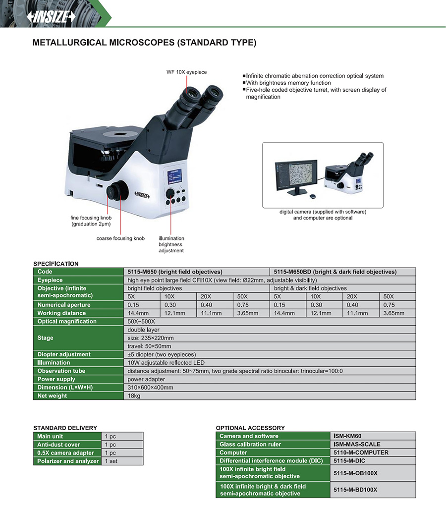 | 5115-M650 | size: 235×220mm, travel: 50×50mm | 50X~500X | high eye point large field CFI10X | bright field |