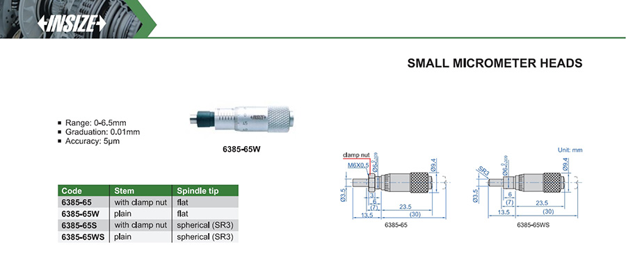 6385-65W 0-6.5mm 5μm 0.01mm plain flat
