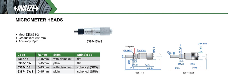 6387-15WS 0-15mm 3μm 0.01mm plain spherical (SR5)