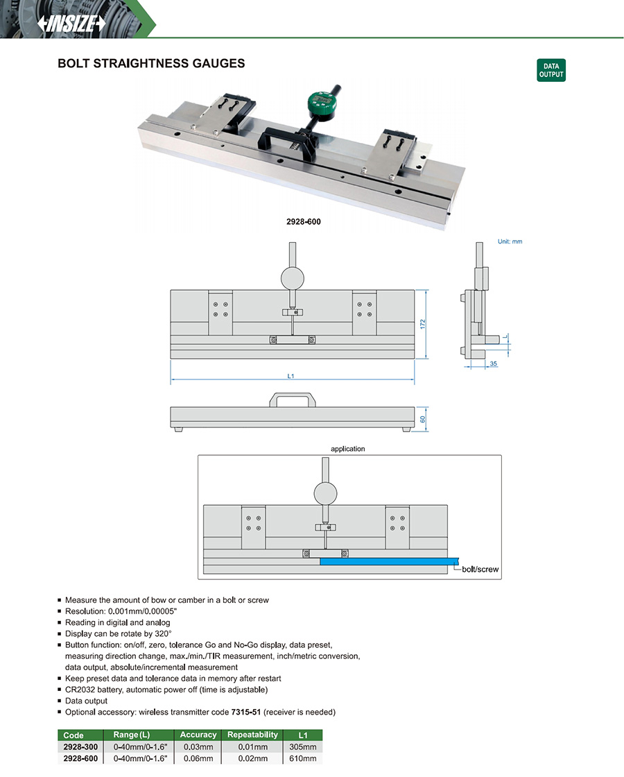 | 2928-300 | 0-40mm/0-1.6" | 0.03mm | 0.001mm/0.00005" |