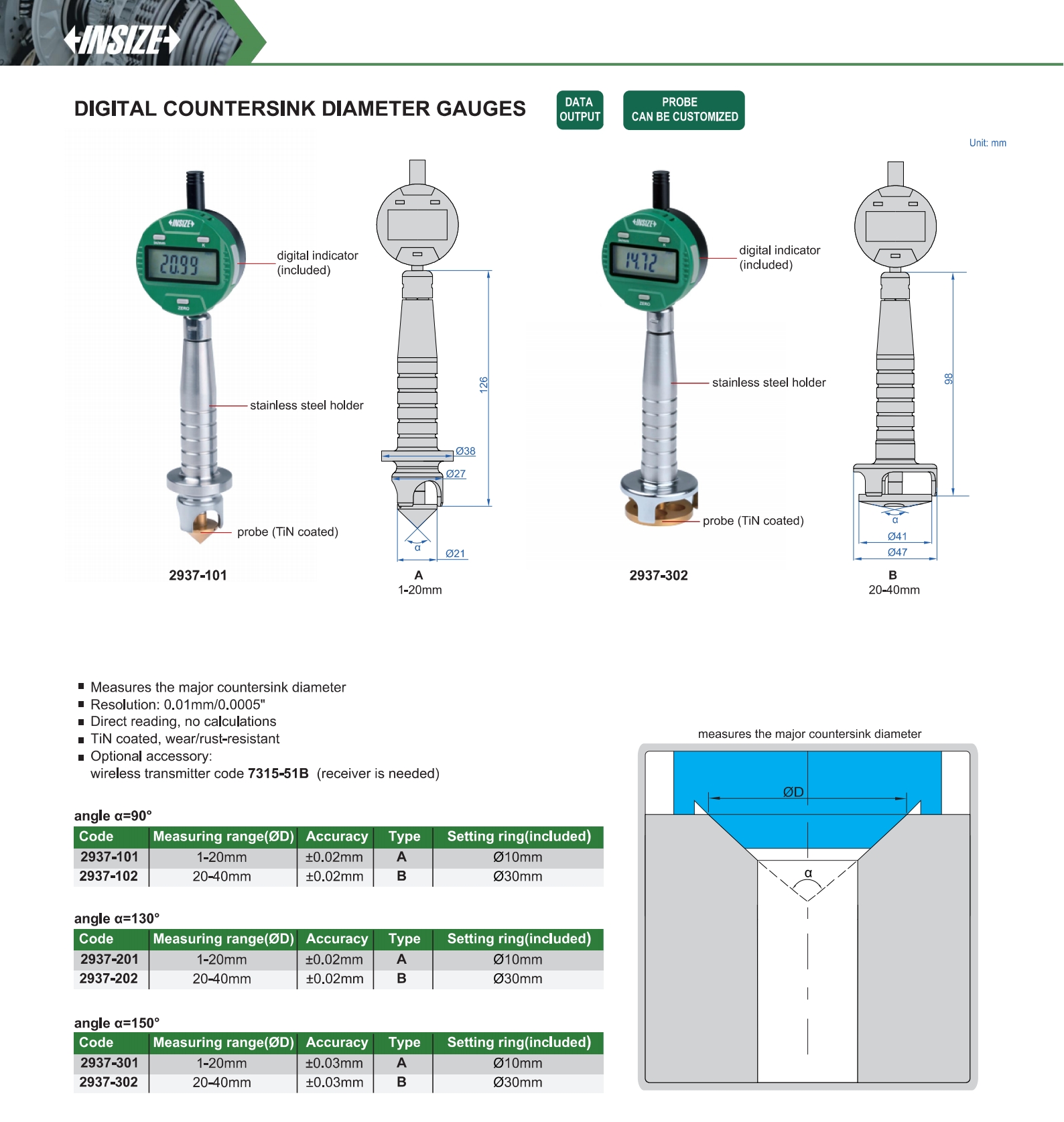2937-302 Ø20-Ø40mm ±0.03mm 0.01mm/0.0005" 150°