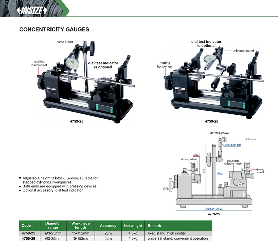 4759-26 2µm Ø3-25mm universal stand, convenient operation