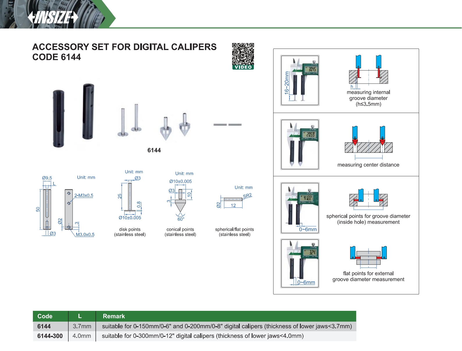 6144 suitable for 0-150mm/0-6" and 0-200mm/0-8" digital calipers (thickness of lower jaws<3.7mm)