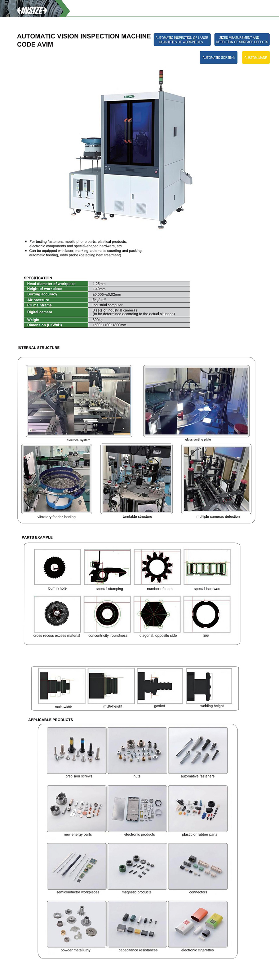 | AVIM | Sorting accuracy:±0.005~±0.02mm | 1-40mm | 1-25mm |