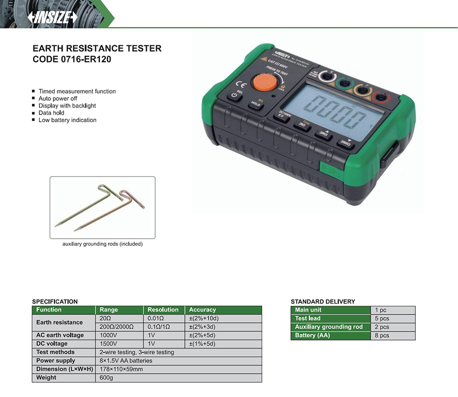 0716-ER120 20Ω/200Ω/2000Ω 1000V 1500V 2-wire testing, 3-wire testing