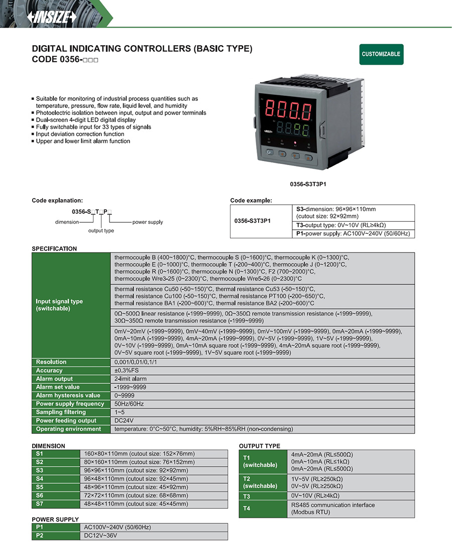 | 0356-□□□ | basic type | ±0.3%FS | RS485 communication interface (Modbus RTU) | 33 types |