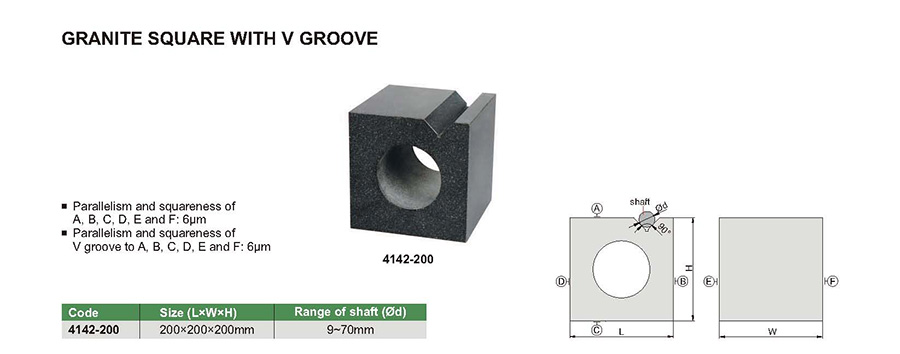 Parallelism and squareness of V groove to A, B, C, D, E and F: 6µm