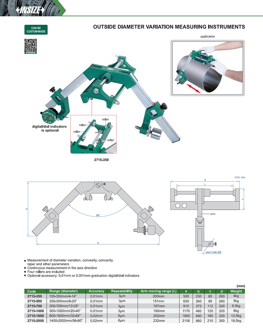 2715-350 100-350mm/4-14" 0.01mm 3µm