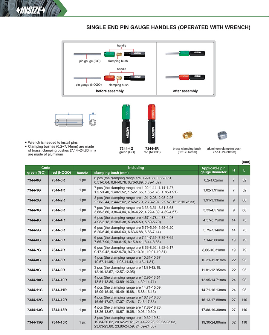| 7344-1G | aluminum | 1.02-1.91mm |