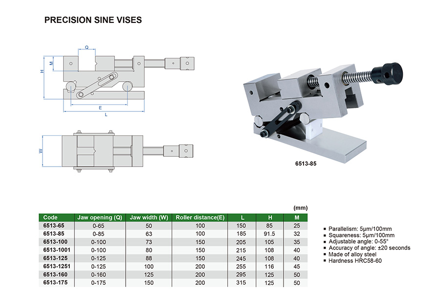 6513-160 0-160mm 125mm 5μm/100mm 5μm/100mm 0-55°