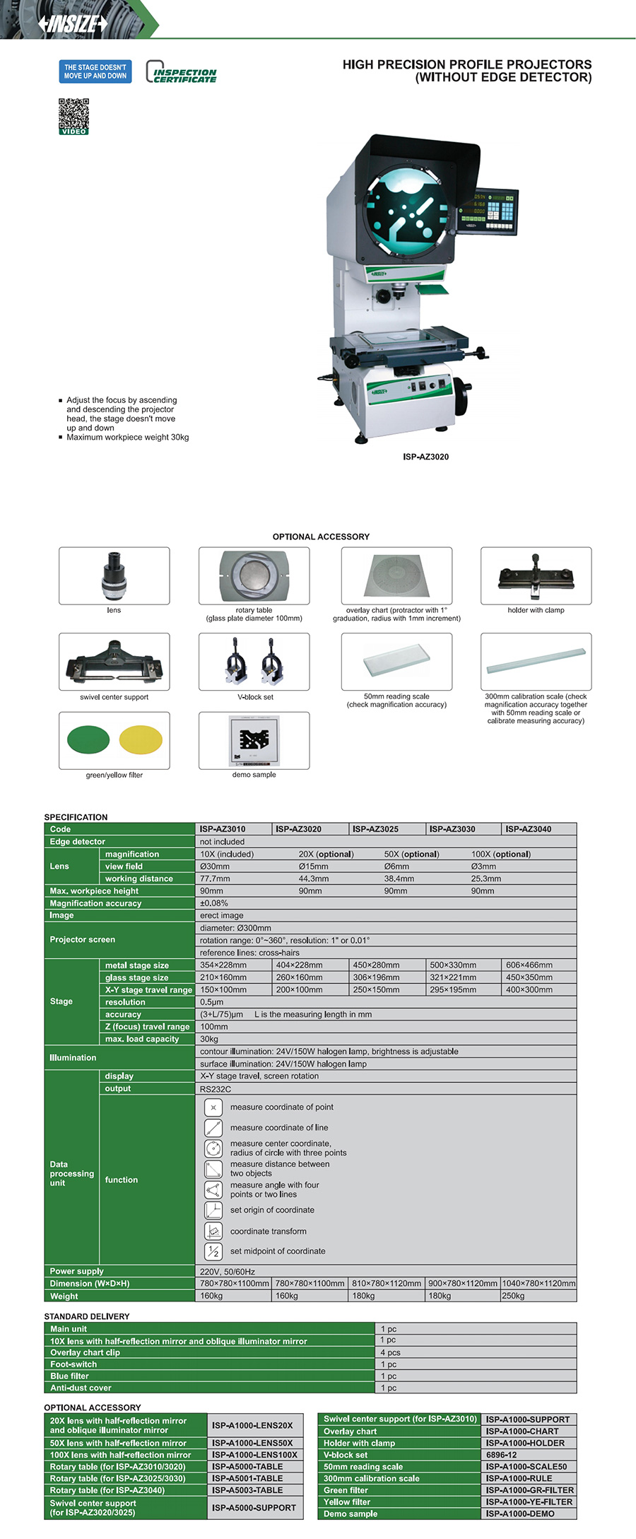 | ISP-AZ3020 | vertical | 200×100mm | (3+L/75)µm | 0.5µm | not included | Ø300mm | erect image |