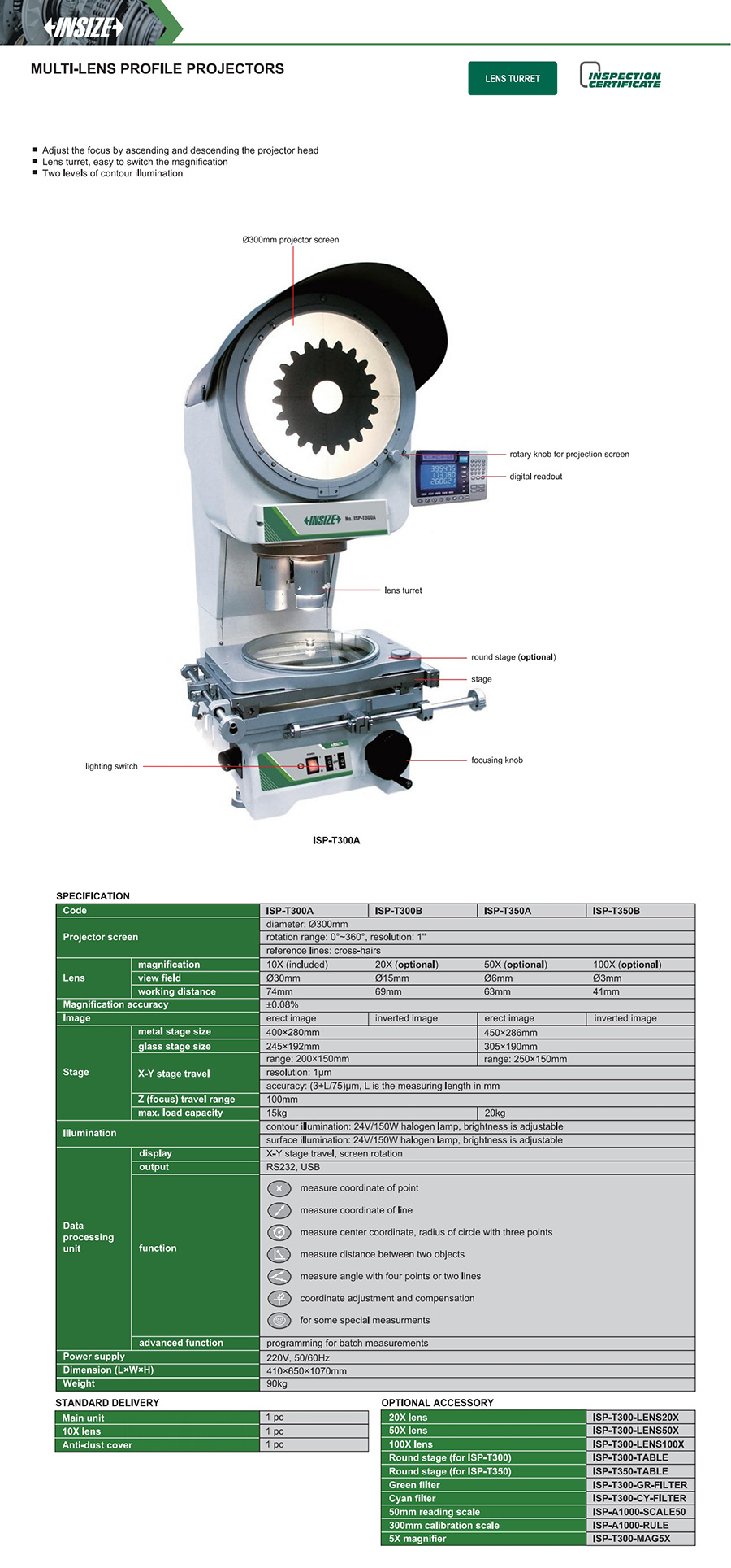 ISP-T300A vertical 200×150mm (3+L/75)µm 1µm not included Ø300mm erect image