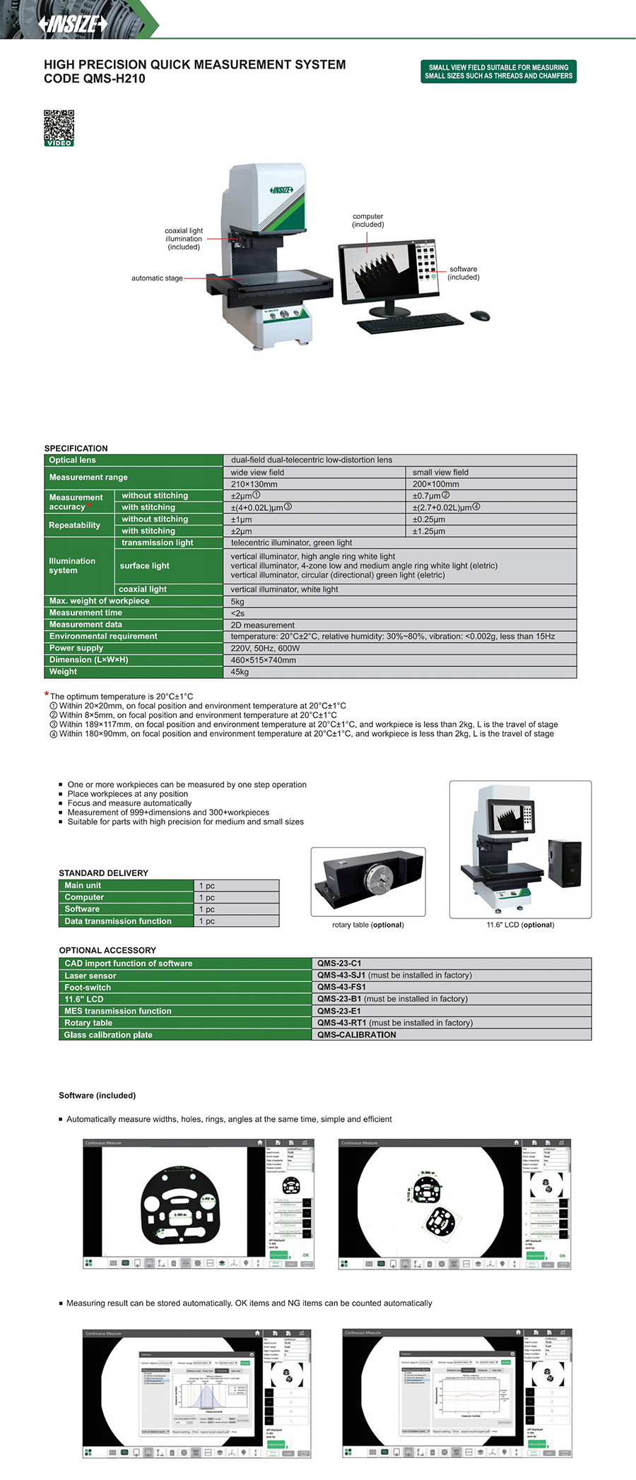QMS-H210 wide view field:210×130mm/ small view field:200×100mm wide view field:±2μm/ small view field:±0.7μm wide view field:±(4+0.02L)μm/ small view field:±(2.7+0.02L)μm wide view field:±1μm/ small view field:±0.25μm wide view field:±2μm/ small view field:±1.25μm 5kg