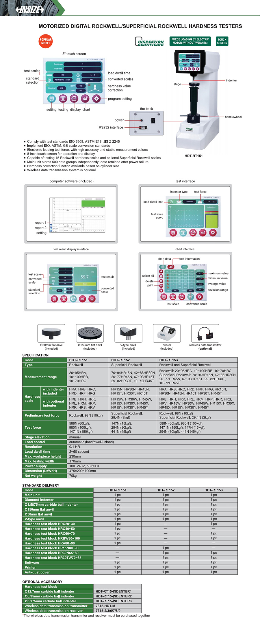 | HDT-RT153 | 0.1HR | automatic (load/dwell/unload) | 230mm | 170mm | HRA, HRB, HRC, HRD, HRF, HRG, HR15N, HR30N, HR45N, HR15T, HR30T, HR45T |