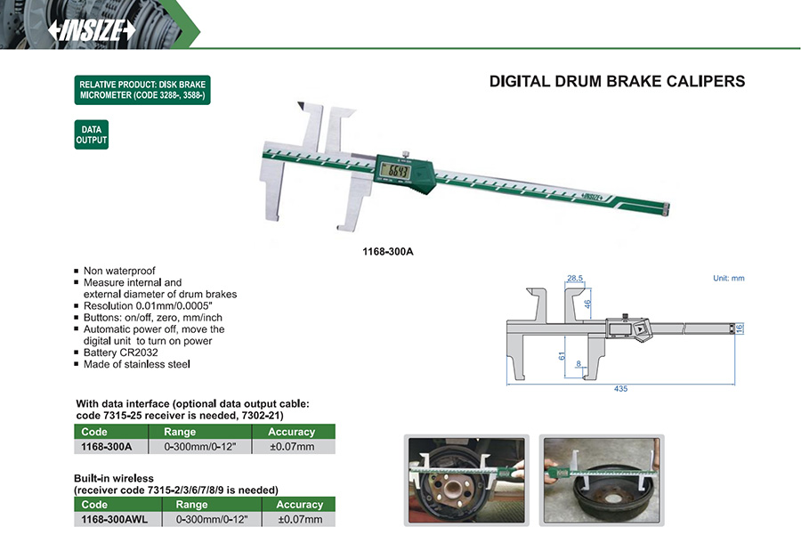 1168-300AWL 0-300mm/0-12" ±0.07mm 0.01mm/0.0005" built-in wireless