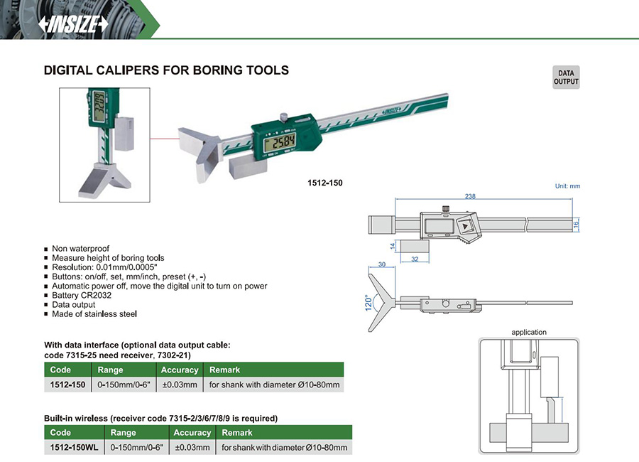 | 1512-150WL | 0-150mm/0-6" | ±0.03mm | 0.01mm/0.0005" | built-in wireless |
