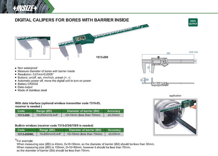 1513-200WL 10-200mm/0.4-8" ±0.03mm 0.01mm/0.0005" built-in wireless
