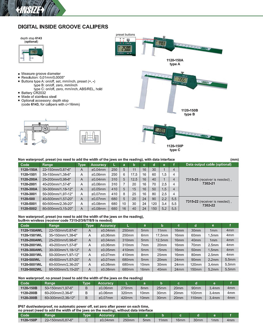 1120-150A 22-150mm/0.87-6" ±0.04mm 0.01mm/0.0005" with data interface